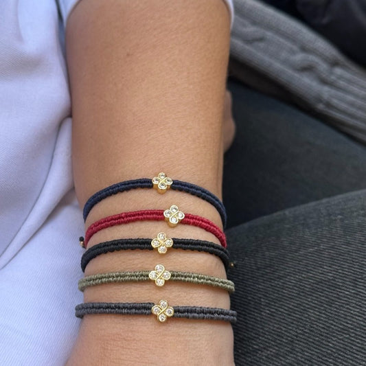 Macrame Knotted Friendship Bracelet & 14K Real Gold Plated 925 Silver Round Initial Bead